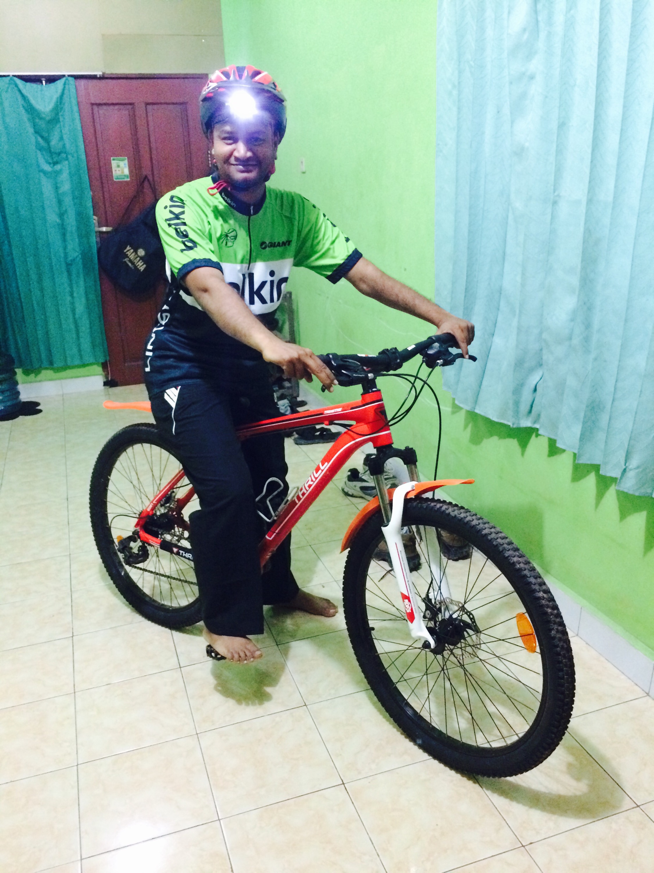 Photo taken by my friend inside our house as I am going alone for the ride.